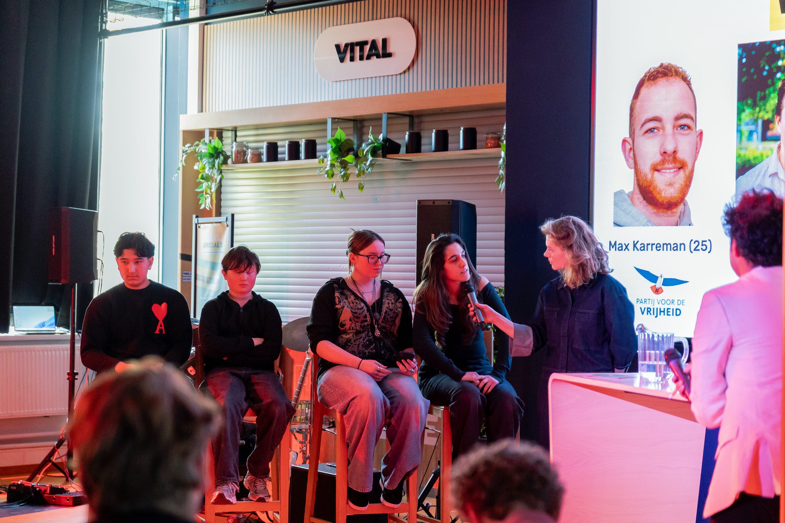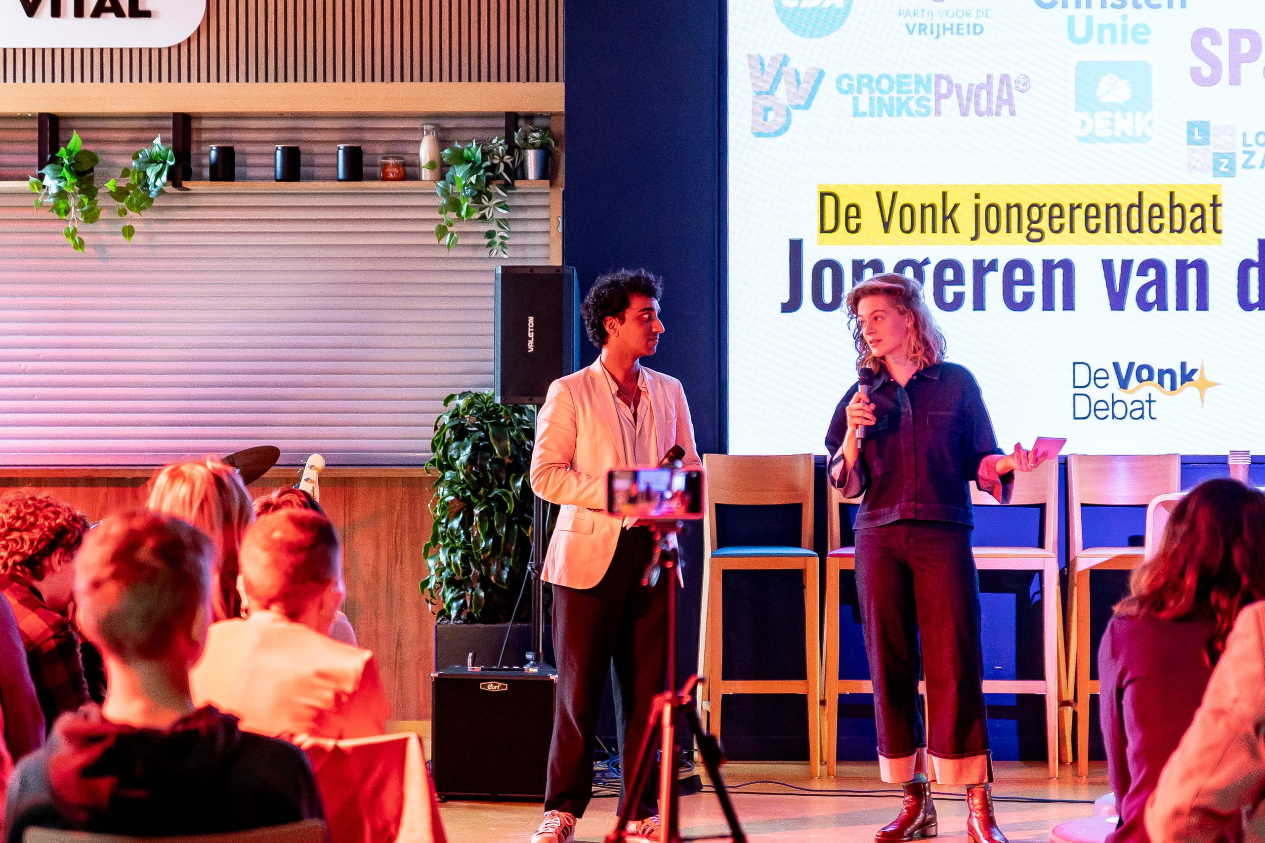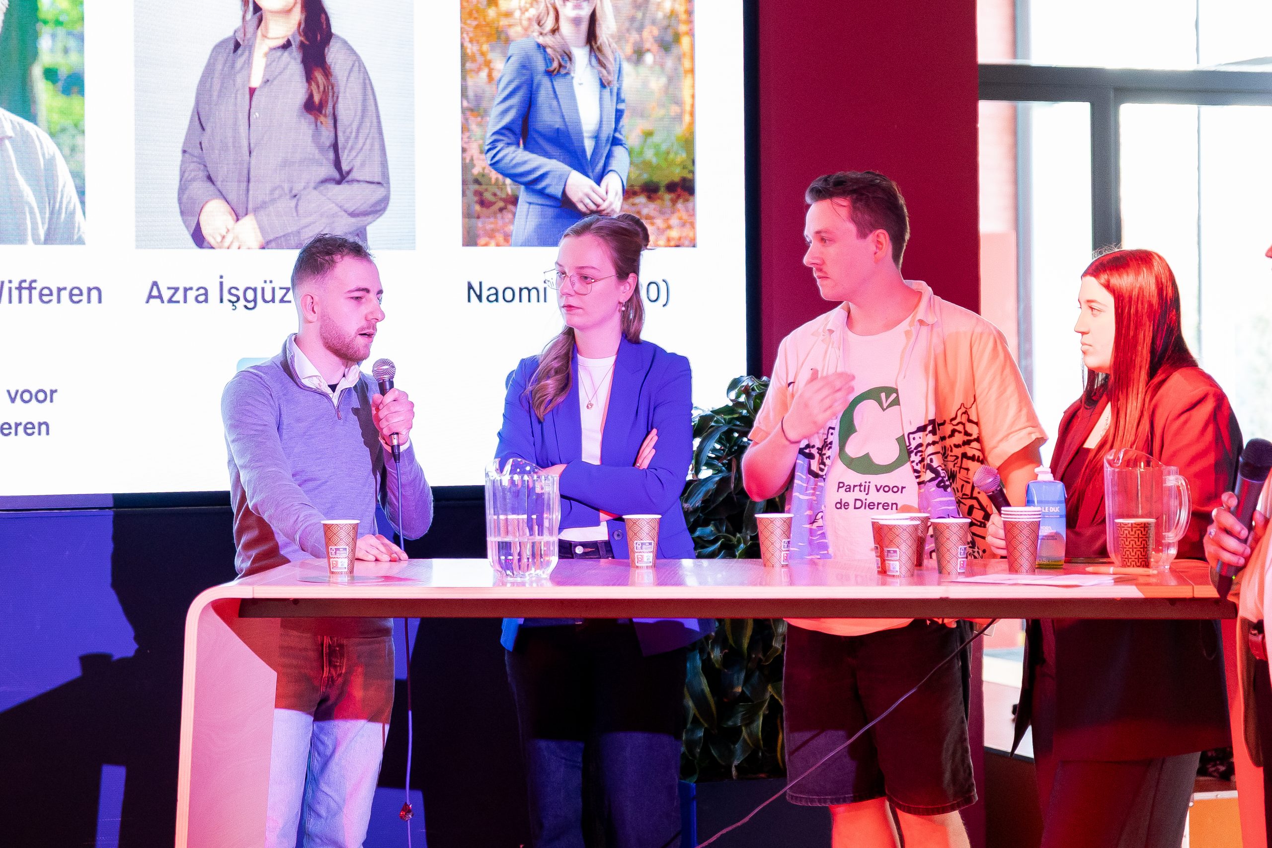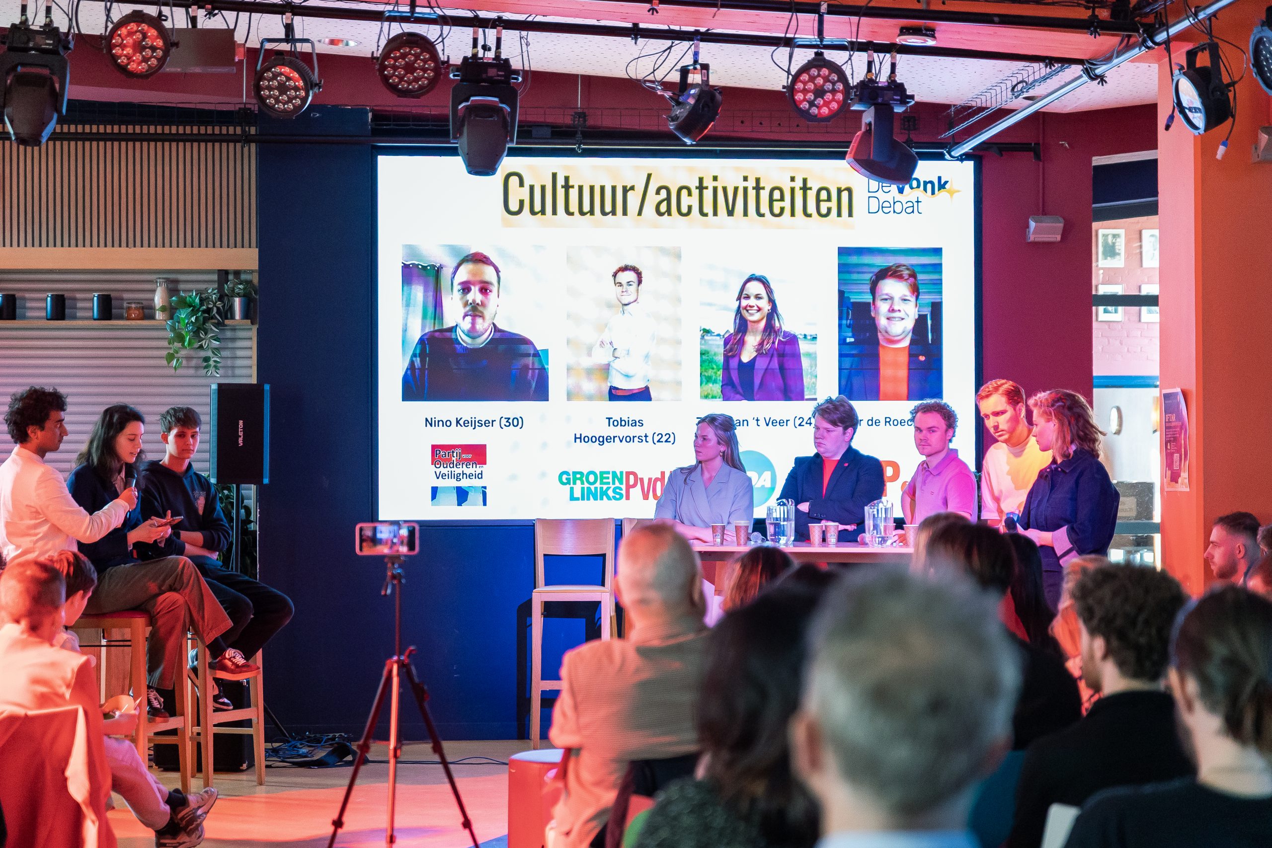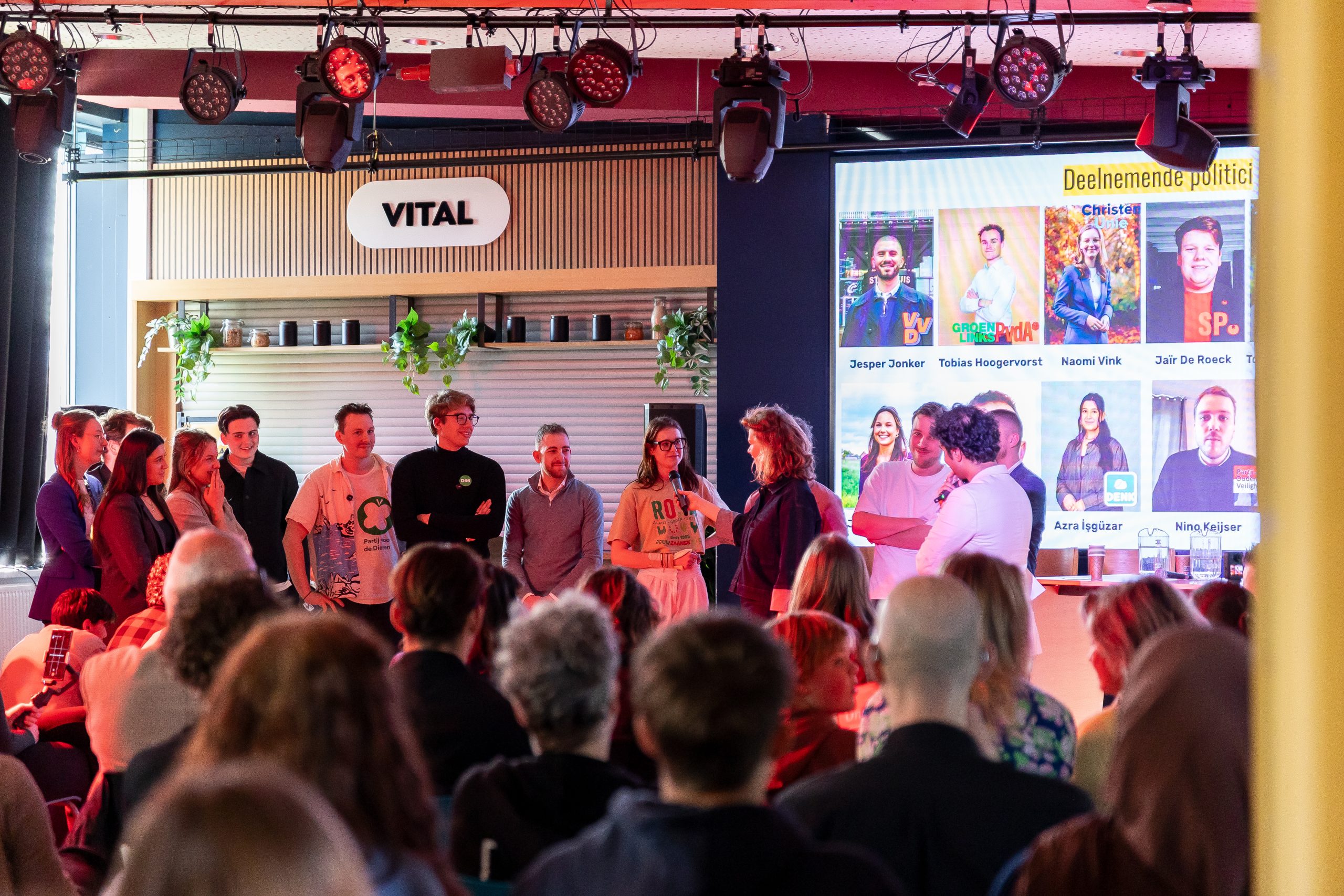 Liefst twaalf kandidaat-raadsleden deden mee: Nino Keijser (30, POV); Tobias Hoogervorst (22, GL-PvdA), Jesper Jonker (24, VVD), Nina van Aalst (27, Rosa), Max Karreman (25, PVV), Jesper Brouwer (19, D66), Julie van ’t Veer (24, CDA), Tommy van Wifferen (27, PvdD), Jaïr de Roeck (22, SP), Azra Işgüzar (20, Denk), Naomi Vink (18, CU), Joey Ineke (18, LZ).